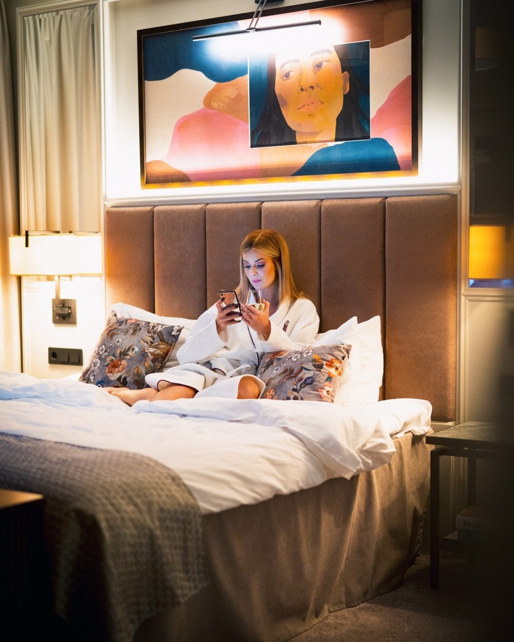 Bespoke fabrics and cushions complement specially commissioned artworks, creating a space that is both restful and inspiring.