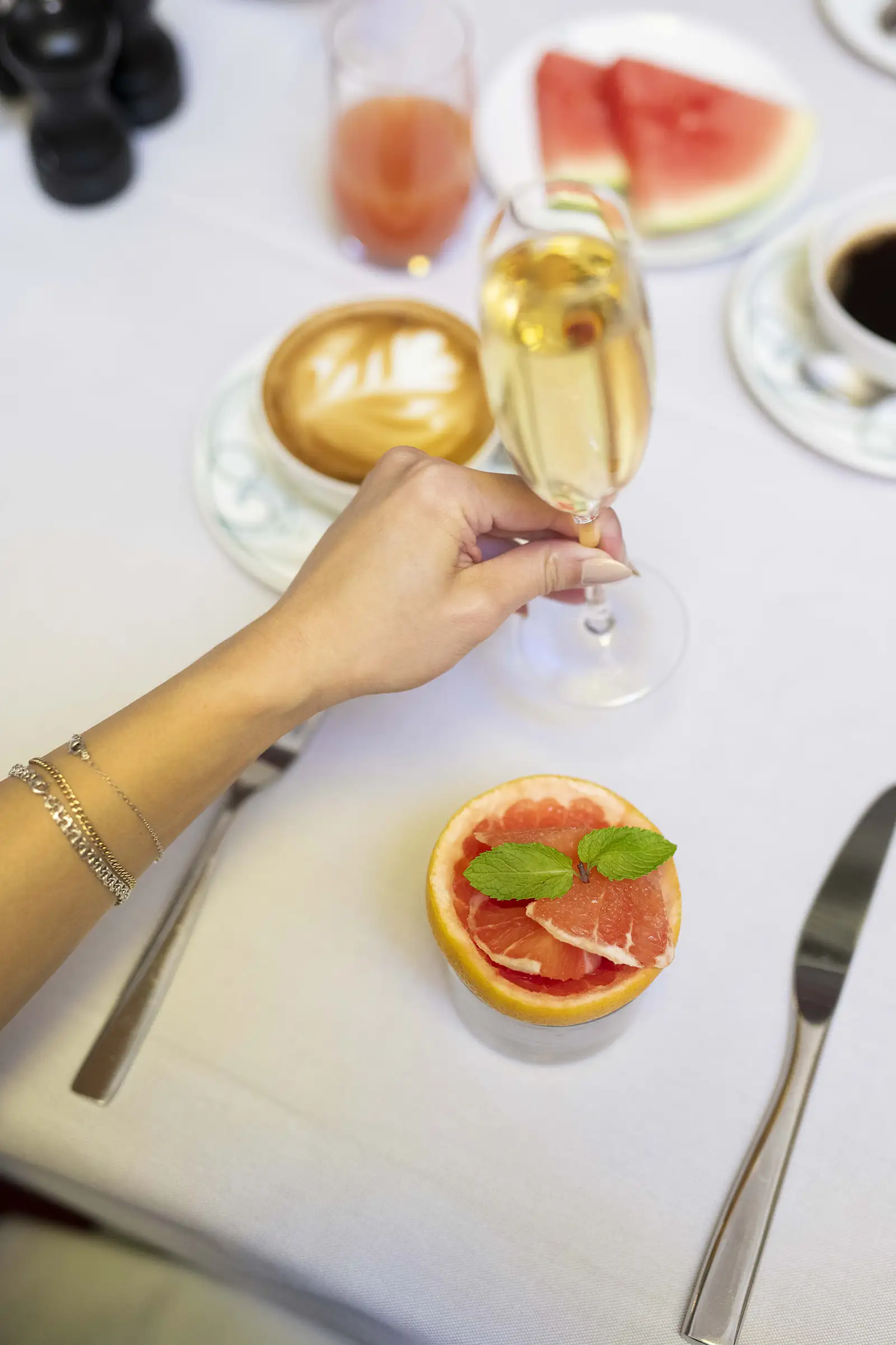 En av de saker som verkligen skiljer Bonnie’s brunch från mängden är den lyxiga touchen som ett glas champagne ger. I brunchupplevelsen ingår ett glas bubbel som serveras direkt när du sätter dig till bords. Det mousserande vinet är den perfekta ackompanjemanget till de eleganta rätterna och sätter en festlig prägel på din helgmorgon. Att inleda dagen med ett glas champagne i en så vacker miljö är en upplevelse som gör att du känner dig extra omhuldad och ompysslad.